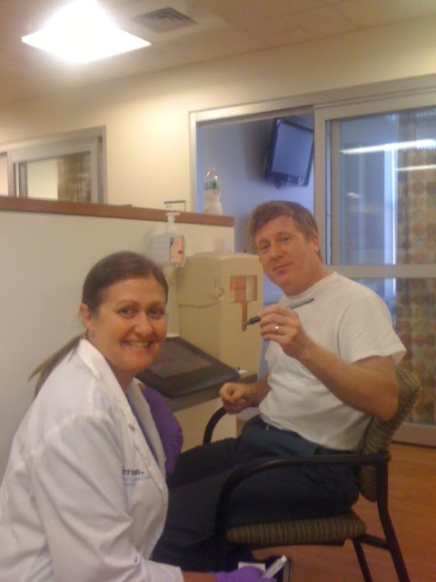 | Nurse Annette and me with my Cintiq at Infusion Studios. |